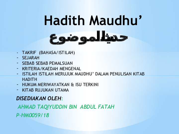 Ppt Hadith Maudhu Pemebentangan Pptx Ahmad Taqiyuddin Academia Edu